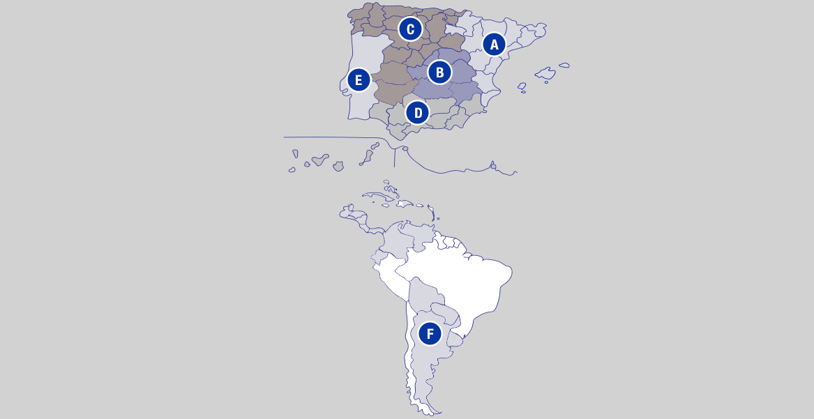 Contacto Delegaciones AVK Válvulas Tarragona Av. Europa, 27-31 Pol.Ind. Constantí 43120 Constantí 977 54 30 08 Madrid C/ Palomas 24 Pol. Ind. El Cascajal 28320 Pinto +34 977 543 008 Ext. 1104 Sevilla C/ Camino Empedrado Nº 5 Pol. Ind. Parque Plata 41900 Camas +34 954 393 823 Departamento Comercial en España Manuel Martín Director General 629 726 578 Contacte por email Carlos Patiño Jefe Área Este (A) 618 745 453 Contacte por email José Vela Jefe Área Centro (B) 618 290 677 Contacte por email José Antonio Sánchez Jefe Área Norte (C) 608 152 215 Contacte por email Antonio Domene Jefe Área Sur (D) 650 004 117 Contacte por email Departamento Comercial en Portugal Jorge Moreira Tedim Sales Manager Portugal (E) +351 933 298 888 Contacte por email Departamento Comercial en América Álvaro García-Noblejas Jefe Ventas América Central y del Sur (F) +34 649 50 64 84 Contacte por email
