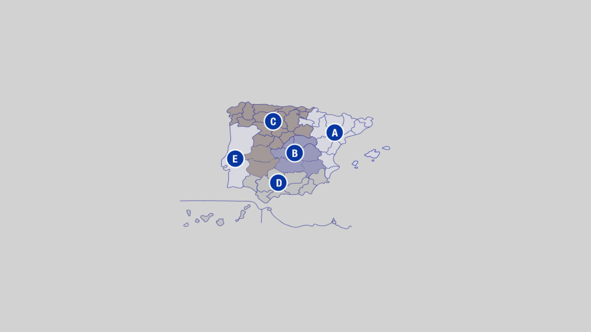 - Carlos Patiño: Cataluña, Comunidad Valenciana, Baleares, Aragón y Comunidad Foral de Navarra (A)
