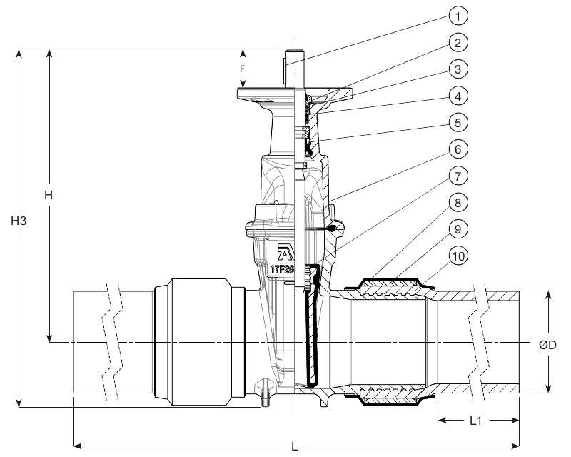 - O tubo de PE standard é montado sob pressão nas extremidades ranhuradas de ferro fundido e travado com um anel de aço externo que é depois protegido com manga de plástico termo retráctil. Sem parafusos, de passo completo e com uma junta resistente concebida para cumprir os critérios especificados na norma DVGW G5600-1. As extremidades do tubo permitem soldadura direta assegurando uma ligação rápida e segura.